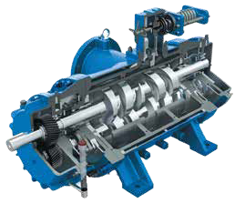 screw spindles in closed compartment. Wherein, a predefined clearance is maintained